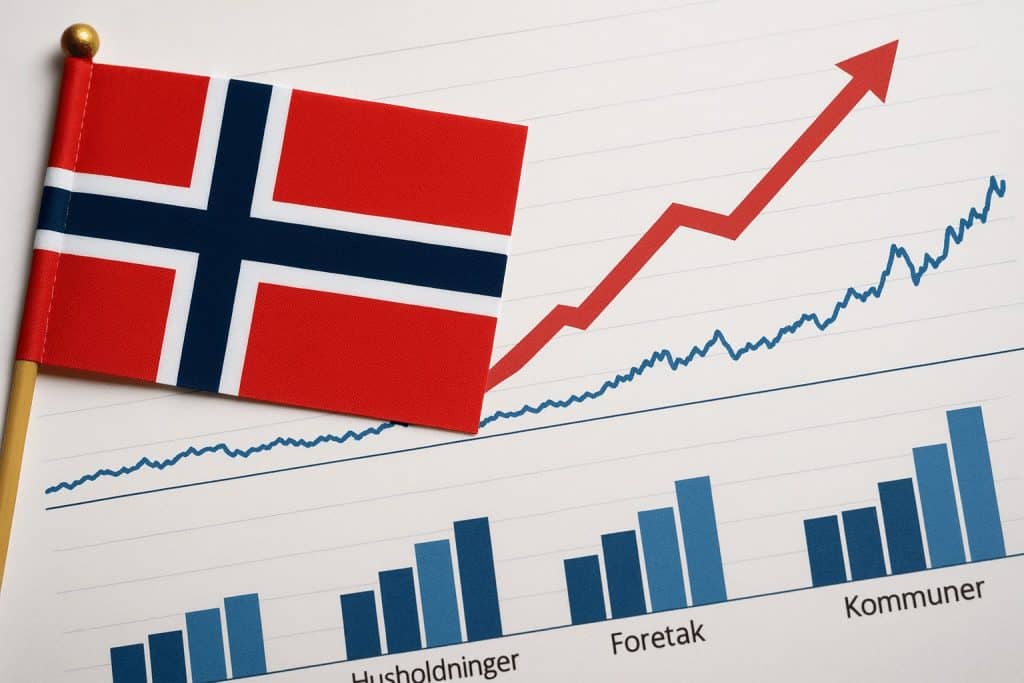 Den 26. mai 2025 rapporterte Statistisk sentralbyrÃ¥ (SSB) en økning i publikums samlede innenlandske gjeldsvekst, som nÃ¥ ligger pÃ¥ 4,1 prosent for tolv mÃ¥nedersperioden frem til april 2025. Dette er en økning fra 3,8 prosent i mars 2025, og markerer første gang siden september 2023 at veksten har passert 4 prosent. Samtidig viser tallene at […]