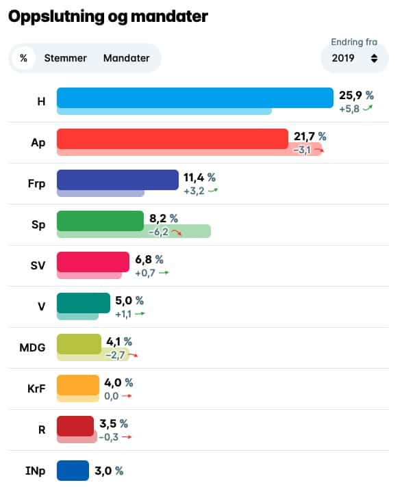 Det ble som ekspertene på valgvaken spådde, det ble borgerlig seier og Høyre ble det største partiet i Norge. For første gang på nesten 100 år er ikke Arbeiderpartiet det største partiet i Norge lengre. Også i flere av de store byene gikk borgerlige av med seieren. Høyresiden får flertallig mandater iblant annet Oslo, Stavanger og Kristiansand.